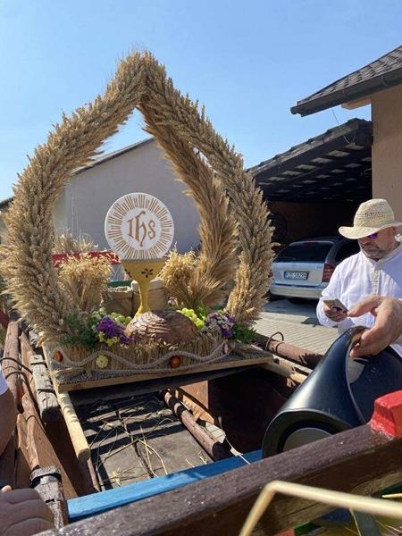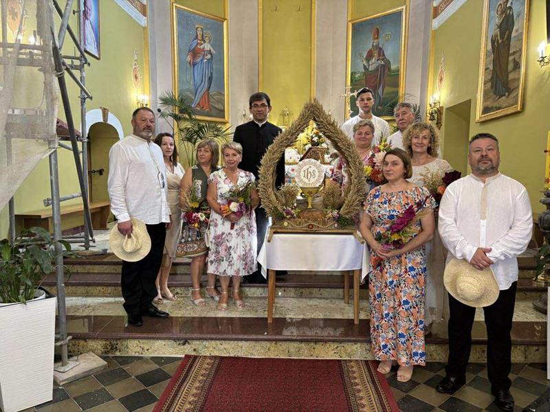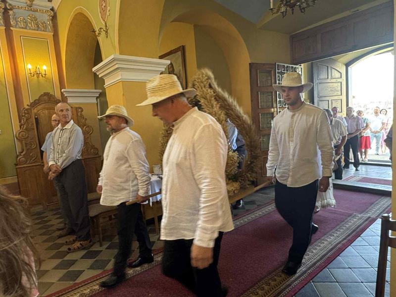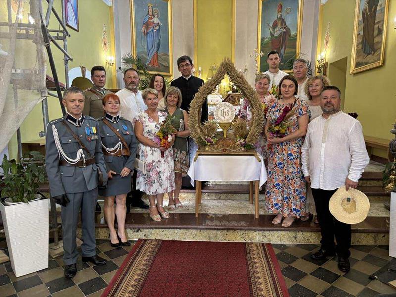 W duchu tradycji przekazywanej z pokolenia na pokolenie, członkowie Towarzystwa Kultury i Rozwoju Wsi Harta przygotowali wieniec żniwny – misternie upleciony z kłosów zbóż, symbolu tegorocznych plonów, urodzaju i Bożego błogosławieństwa. Wieniec, będący znakiem wdzięczności za dary ziemi, został uroczyście przewieziony do świątyni, by w czasie Mszy stać się wyrazem naszej wiary.